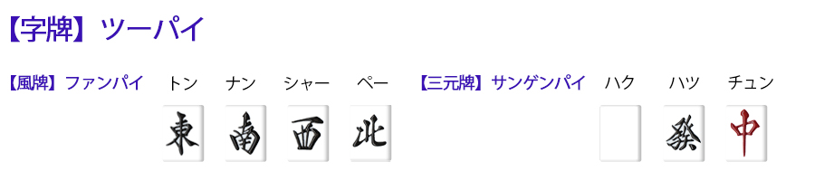 麻雀には 34種類の牌があり、それぞれ4枚ずつ用意されています。