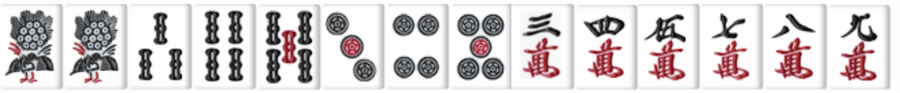 STEP1で、「麻雀は13枚の牌を持ち、山から牌を1枚持ってきて捨てる動作を繰り返す」という話をしました。つまり上がりの形は14枚です。